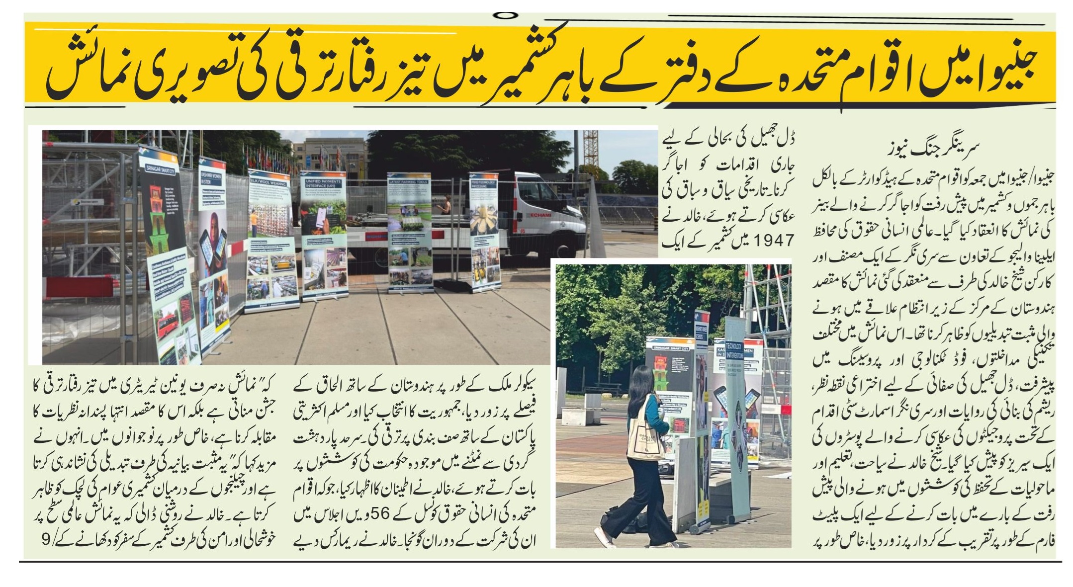 UNITED NATIONS: A photo exhibition was held outside the United Nations office in Geneva on Friday, highlighting the rapid development and progress in Jammu and Kashmir.