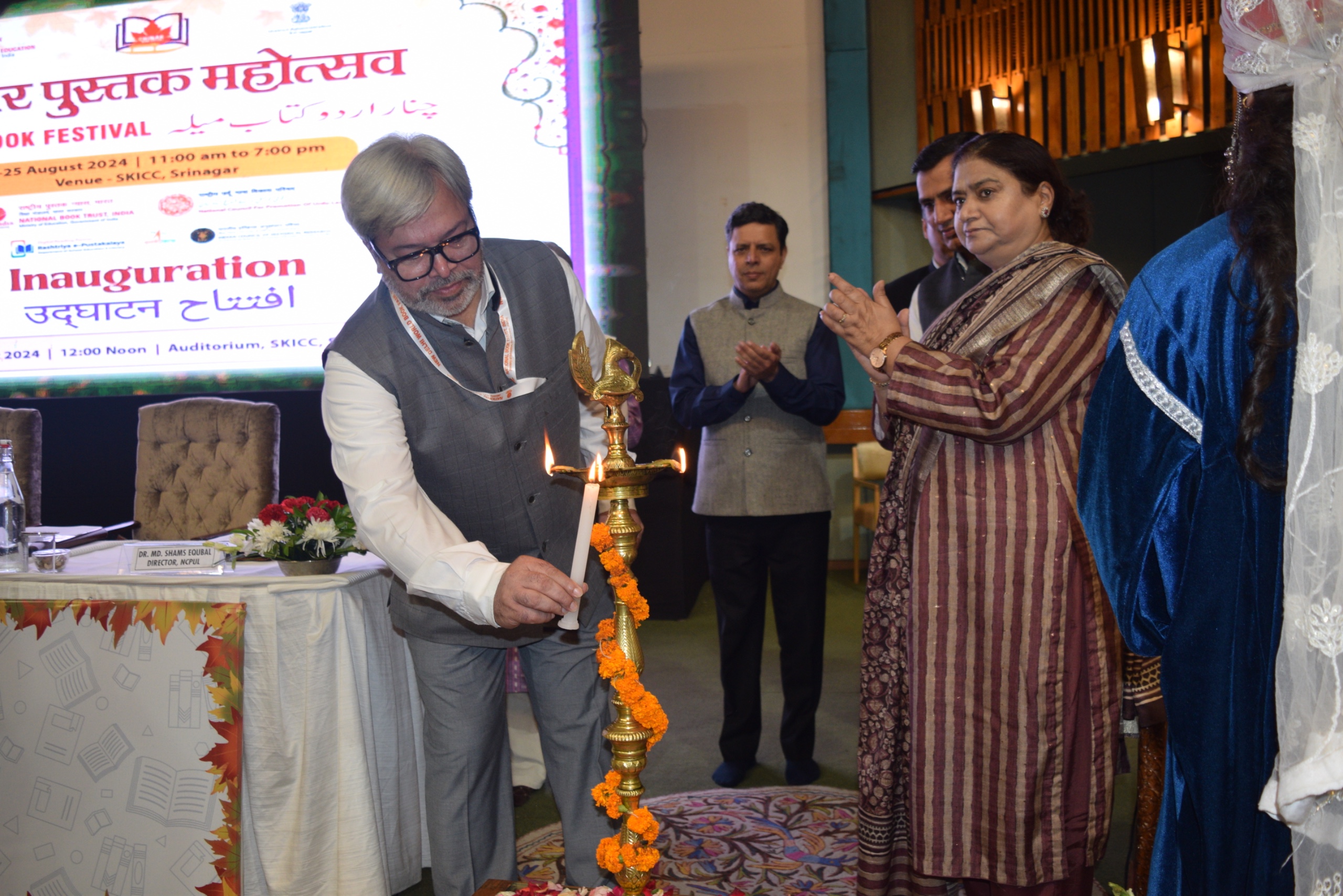 The Chinar Book Festival, which runs from August 17th to 25th, 2024, at SKICC, Srinagar, commenced with ceremonial lighting. The inaugural ceremony featured prominent figures such as Dr. Shams Eqbal, Director of NCPUL; Prof. Milind Marathe, Chairman of the National Book Trust, India; Director Yuraj Malik; Deputy Commissioner of Srinagar, Dr. Bilal Mohiuddin Bhat; Prof. Nilofar Khan, Vice-Chancellor of Kashmir University; Commissioner Secretary Sanjiv Verma; and ICHR Chairman Shri Raghwinder Tanwar.
