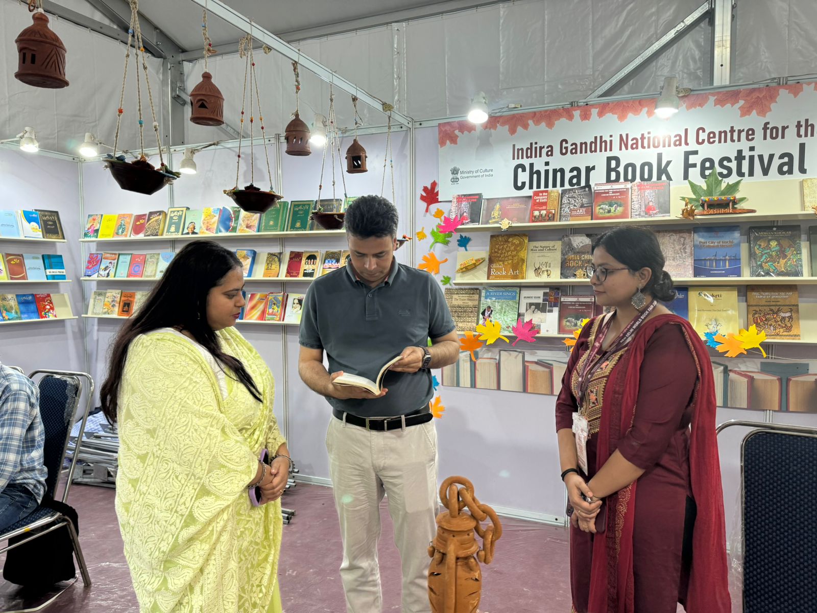 At the Chinar Book Festival, currently underway, the Indira Gandhi National Centre for the Arts (IGNCA) has captured the attention of visitors with a unique stall, distinct from the others in its minimalist design.