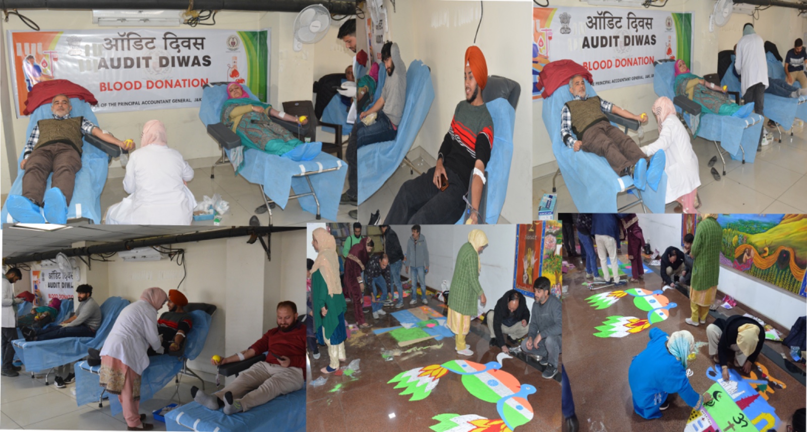 The Audit Week 2024 celebrations at the AG Office, Srinagar, continued on the second day with a mix of cultural, social, and professional activities. The day began with a Rangoli Competition, followed by a Blood Donation Camp.