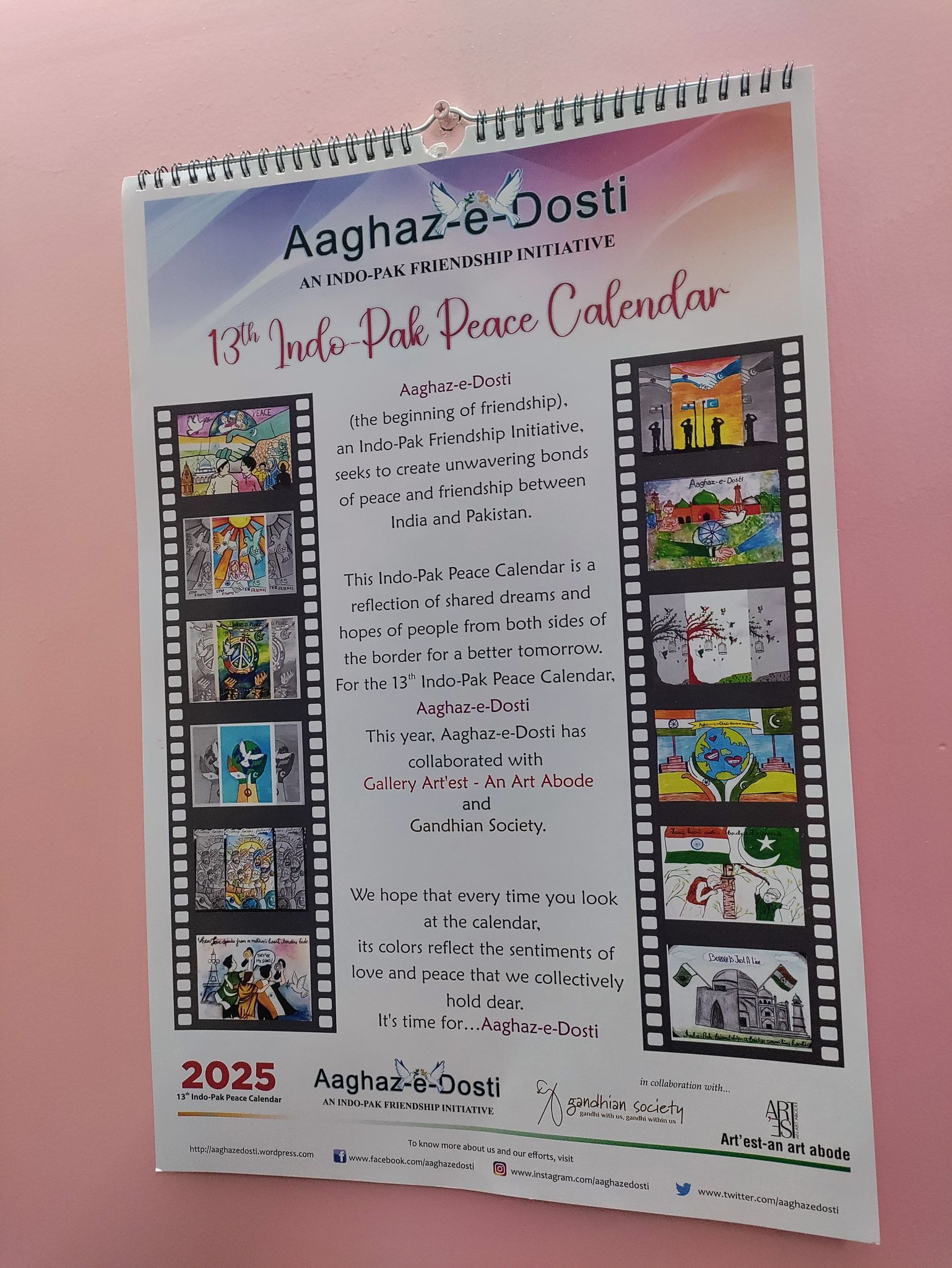 For those interested in owning this symbol of hope, copies of the Indo-Pak Peace Calendar can be obtained by emailing aaghazedosti@gmail.com with your details.
