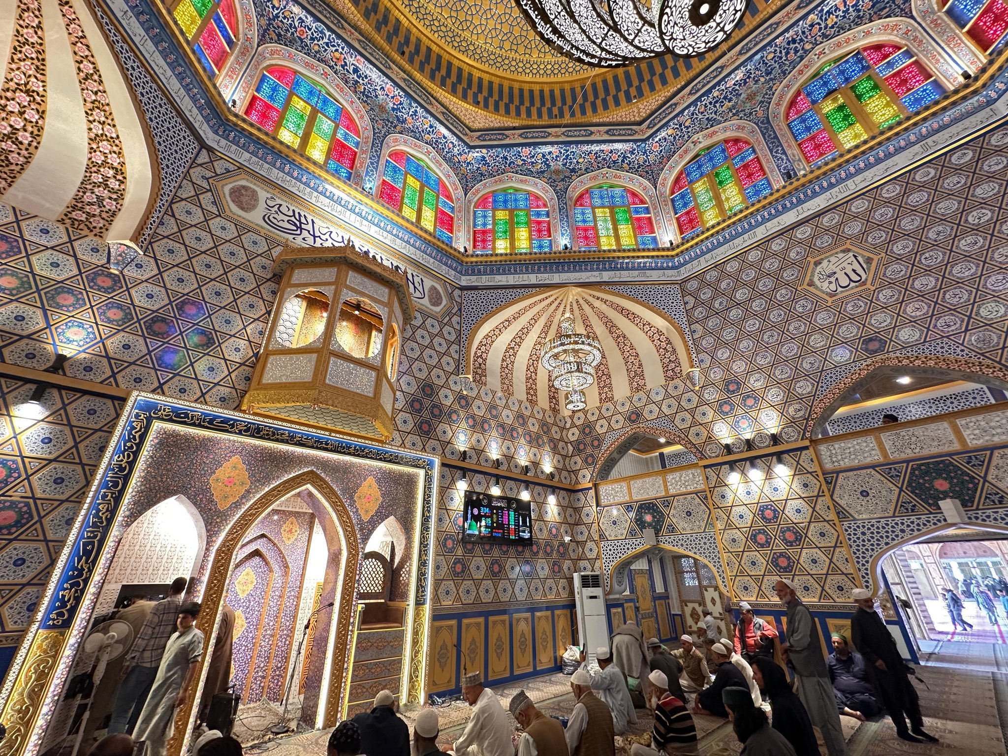The year-long project focused on strengthening and beautifying the shrine’s inner structure, blending Kashmiri traditional crafts like Khatamband, Papier-mâché, Pinjrakari, Calligraphy, and Glasswork with modern facilities such as advanced lighting, digital sound systems, air-conditioning, and security equipment. Golden-carved chandeliers and a redesigned Noor Khana further enhanced the shrine’s grandeur.